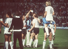 Agachados: Holger Willmer, Dieter Müller, Pierre Littbarski, Jürgen Mohr, Harald Konopka. (Trofeo Joan Gamper 1979)