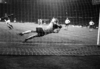 Graham Shaw misses a penalty in the 1961 FA Cup Semi Final 2nd Replay. Gordon Banks is the keeper.