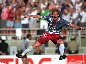 Lalas (22), John Harkes (6), Roy Wegerle (17) celebran