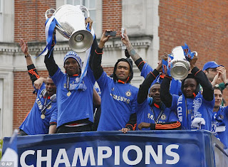 Drogba, Gilles Yapi Yapo and Arthur Boka pose 12 November 2005 before a