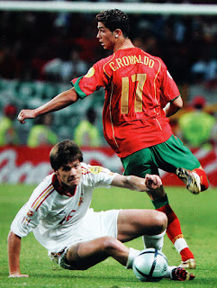 (L) and Spanish defender Juanito during the Euro 2008 Championsh ips Group D football match Greece vs. Spain on June 18, 2008 at the Wals-Sieze nheim stadium in Salzburg.