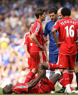 Sergio Busquets, Gerard Pique, Fernando Torres and front left to right