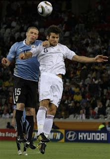 (R) fights for the ball with France's Yoann Gourcuff during their 2010