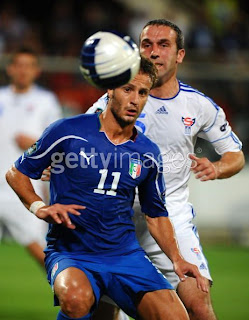 Italy's striker Alberto Gilardino jump for the ball during the Group F
