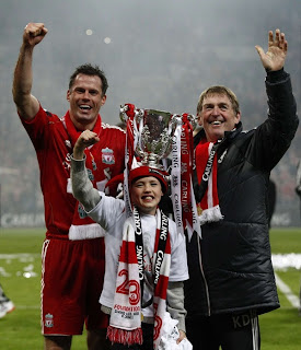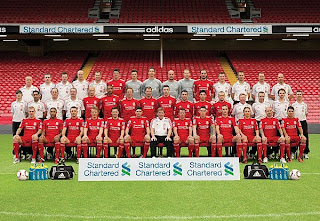 Front Row: Martin Skrtel, Glen Johnson, Fabio Aurelio, Dirk Kuyt, Joe Cole, Steven Gerrard (Captain), Kenny Dalglish (Team Manager), Jamie Carragher, Daniel Agger, Andy Carroll, Lucas Leiva, Raul Meireles, Luis Suarez.