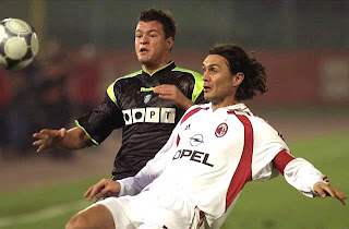 6 Dec 2001: Paolo Maldini of AC Milan in action during the UEFA Cup 3rd round 2nd leg match against Sporting Lisbon at the Jose Alvalade Stadium in Lisbon, Portugal. The game ended 1-1 as Milan went through 3-1 on aggregate.