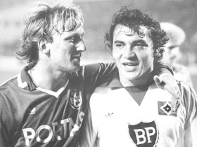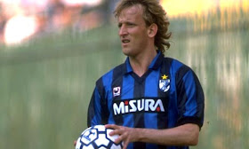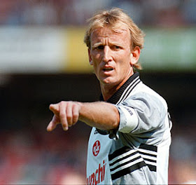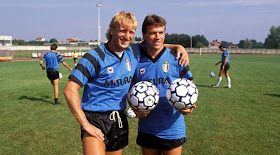 Holger Osieck und Andi Brehme im öffentlich en Training der deutschen Fußball-Na tionalmann schaft in Wannsee 1988