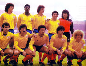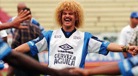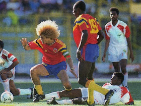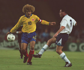 Lambert (R) slides into Colombia's Carlos Valderrama (10)