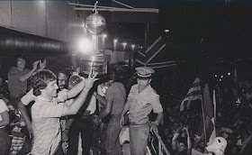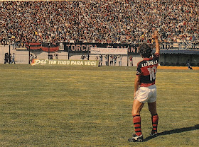 11/1981Zic o, do Flamengo, comemorand o gol contra o Cobreloa do Chile, na Final da Taça Libertador es da América de Futebol, no Estádio do Maracanã.