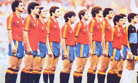 goalkeeper Arconada; backs Camacho and Pirri; half back leal; backs