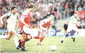 Brian Laudrup en el Bayern Munich-Kaiserslautern de Supercopa de 1990.