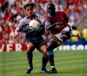 Dwight Yorke en el Aston Villa-West Bromwich Albion 1998.