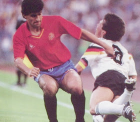ARIS, GERMANY - JUNE 20: EM 1984, Paris; Deutschlan d - Spanien (GER - ESP) 0:1; hintere Reihe http://v.l i.: Ulli STIELIKE, Torwart Toni SCHUMACHER , Rudi VOELLER, Hans-Peter BRIEGEL, Karl-Heinz RUMMENIGGE , Bernd FOERSTER; vordere Reihe http://v.l i.: Lothar MATTHAEUS, Klaus ALLOFS, Norbert MEIER, Andreas BREHME, Karl-Heinz FOERSTER (Photo by Bongarts/G etty Images)