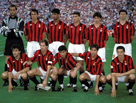 Sebastiano Rossi, Paolo Maldini, Filippo Galli, Marcel Desailly (France), Zvonimir Boban (Hratska), Christian Panucci; Front, f. l. t. r. Mauro Tassotti, Roberto Donadoni, Demetrio Albertini, Dejan Savičević (Jugoslavi