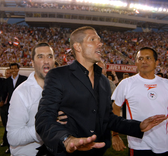 Diego Simeone celebrates after scoring the first goal for his team