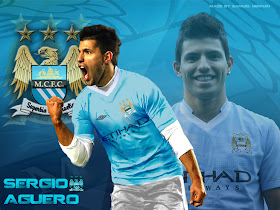 player Sergio Kun Aguero celebrates his goal against Espanyol during