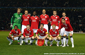 (L to R Back Row) Edwin Van Der Sar / Nemanja Vidic / Louis Saha / Rio Ferdinand / Michael Carrick / Ryan Giggs