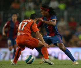 Barcelona'Barcelona Brazilian Ronaldinho (R) vies with Osasuna's Javier Flano (L) during a Spanish League match in Camp Nou stadium in Barcelona 09 September 2006.
