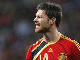 Spanish midfielder Xabi Alonso tries to control the ball during a training session in Hanover, 26 June 2006.