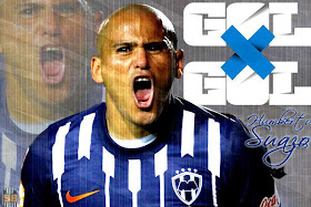 ugador Humberto Suazo de Monterrey celebra un gol ante Cruz Azul, este