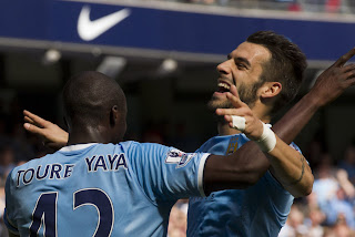 25.08.2013 Cardiff, Wales. Álvaro Negredo of Manchester City substitute